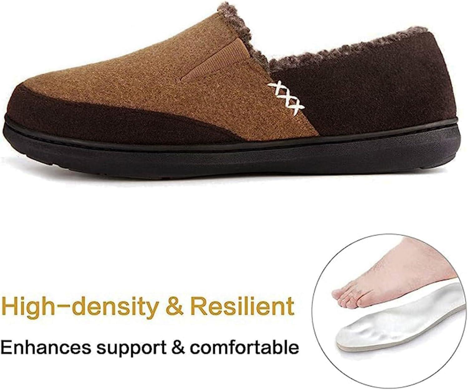 Zigzagger Men’s Comfy Wool Slippers Indoor Outdoor House Shoes, Warm Soft Fur Fuzzy Fleece Lined Memory Foam Sole with Suede Upper(Coffee)