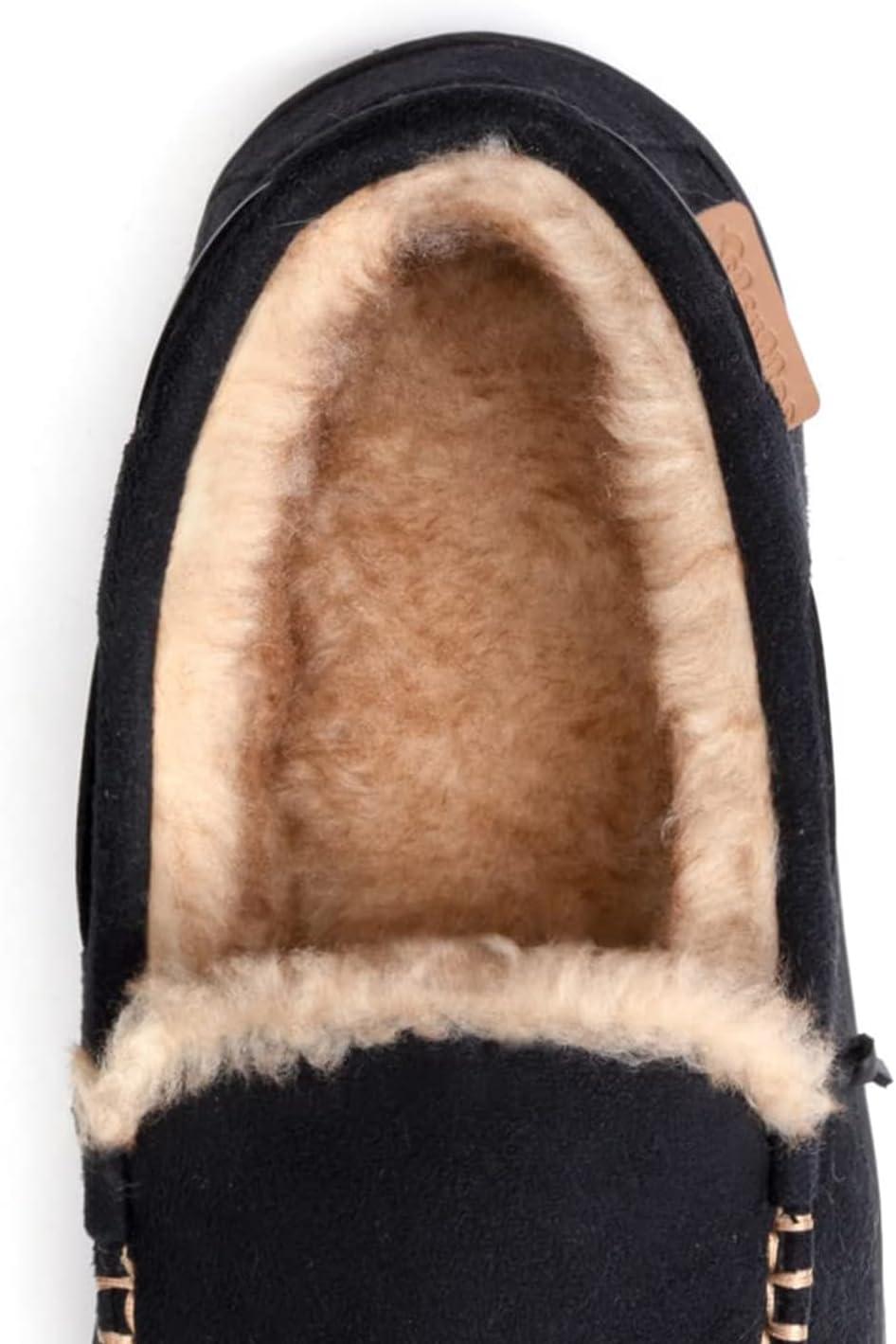 Zigzagger Men’s Moccasin Slippers Memory Foam House Shoes, Indoor and Outdoor Warm Loafer Slippers, Black, 10 M US