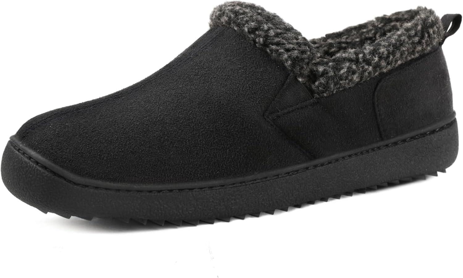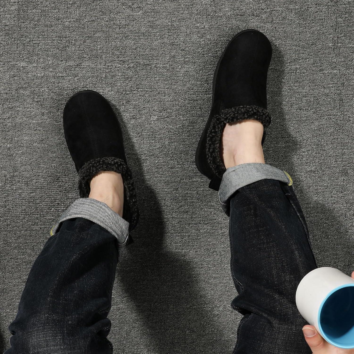 Zigzagger Two Styles for Men Set of 2 Pairs Size 11-12&11,Men’s Slip On Moccasin Slippers, Indoor/Outdoor Warm Fuzzy Comfy House Shoes, Fluffy Wide Loafer Slippers,Coffee&Black